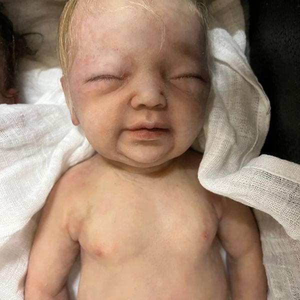 Realistic sIlicon dummy of a newborn female baby with real hair, facial hair, realistic skin tone, etc. Flexible joints. 54 cm long. Weight 2 kg.